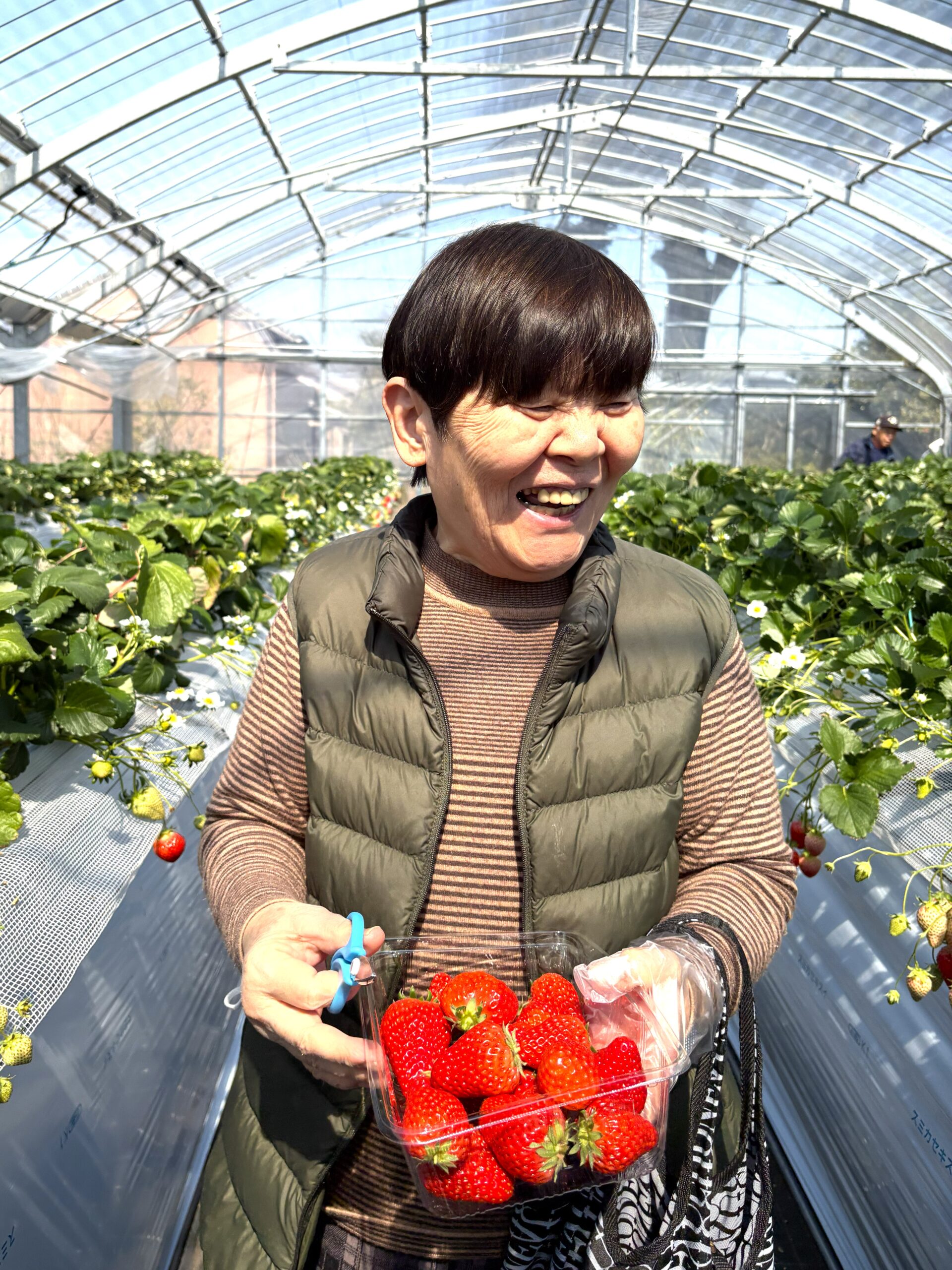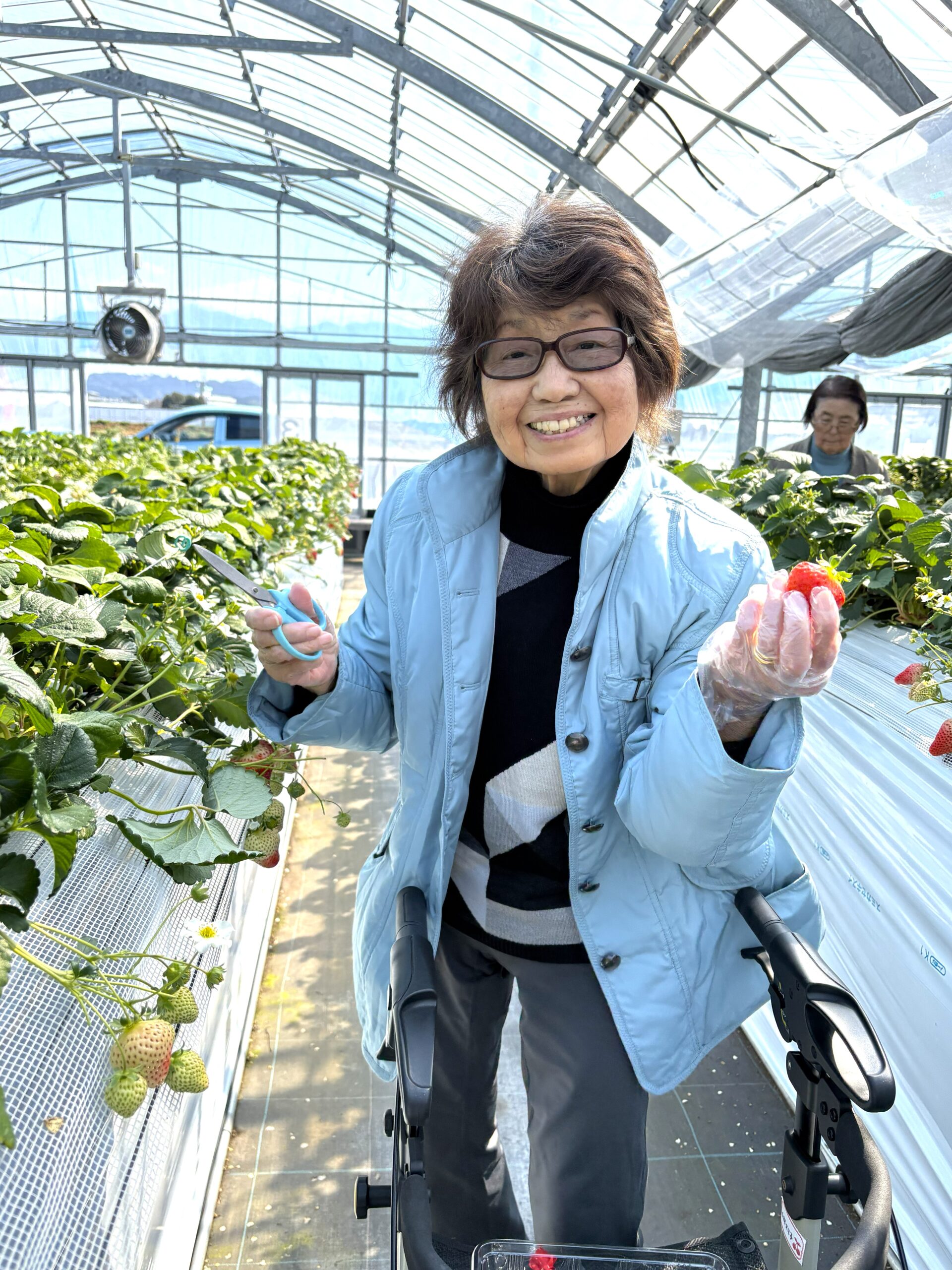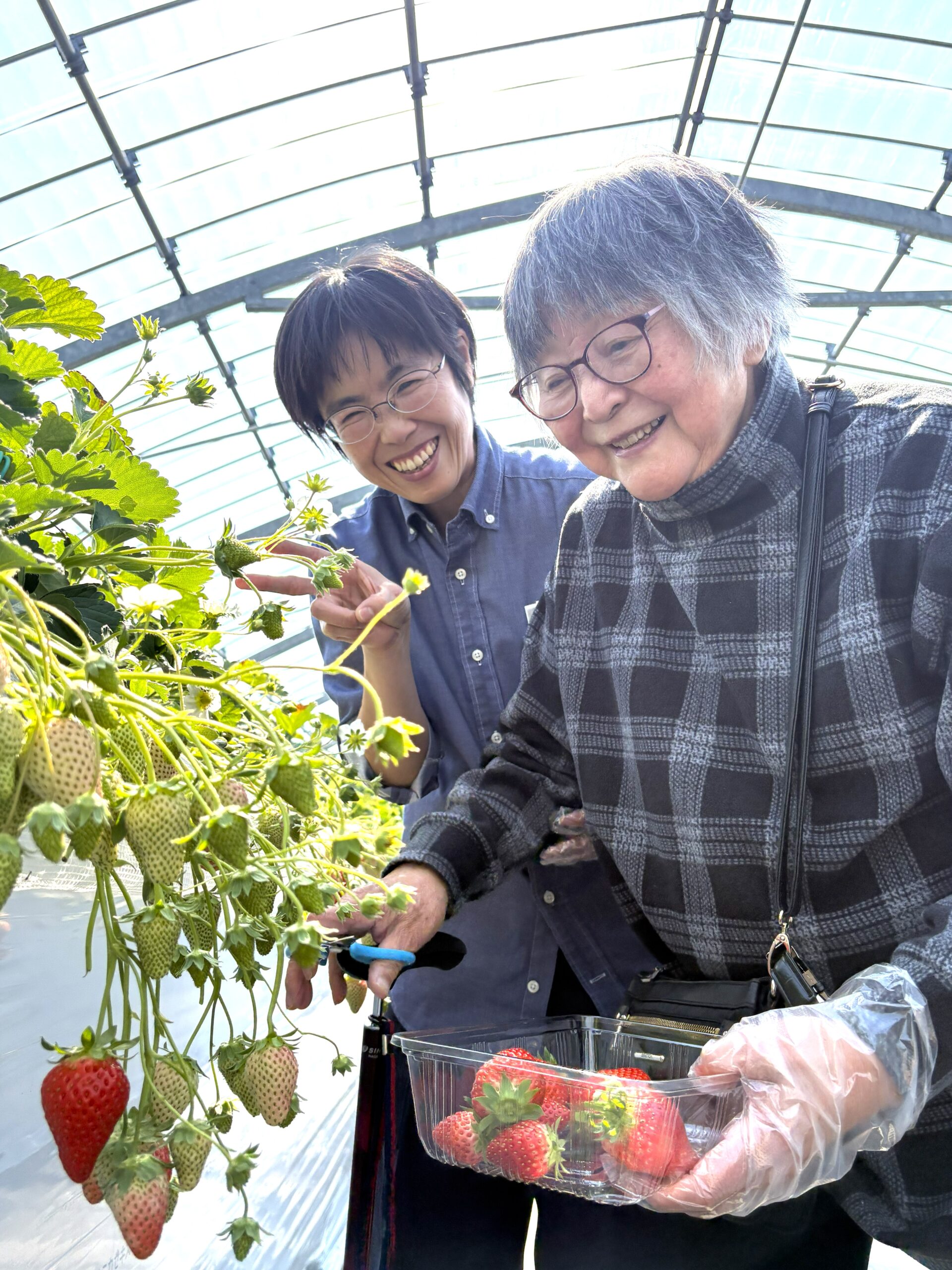「赤くて大きなイチゴが採れたから、帰って孫に自慢するの」