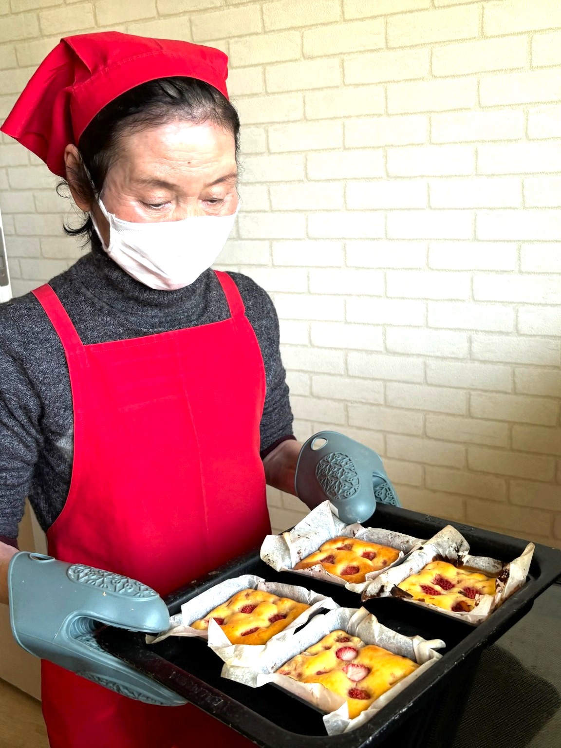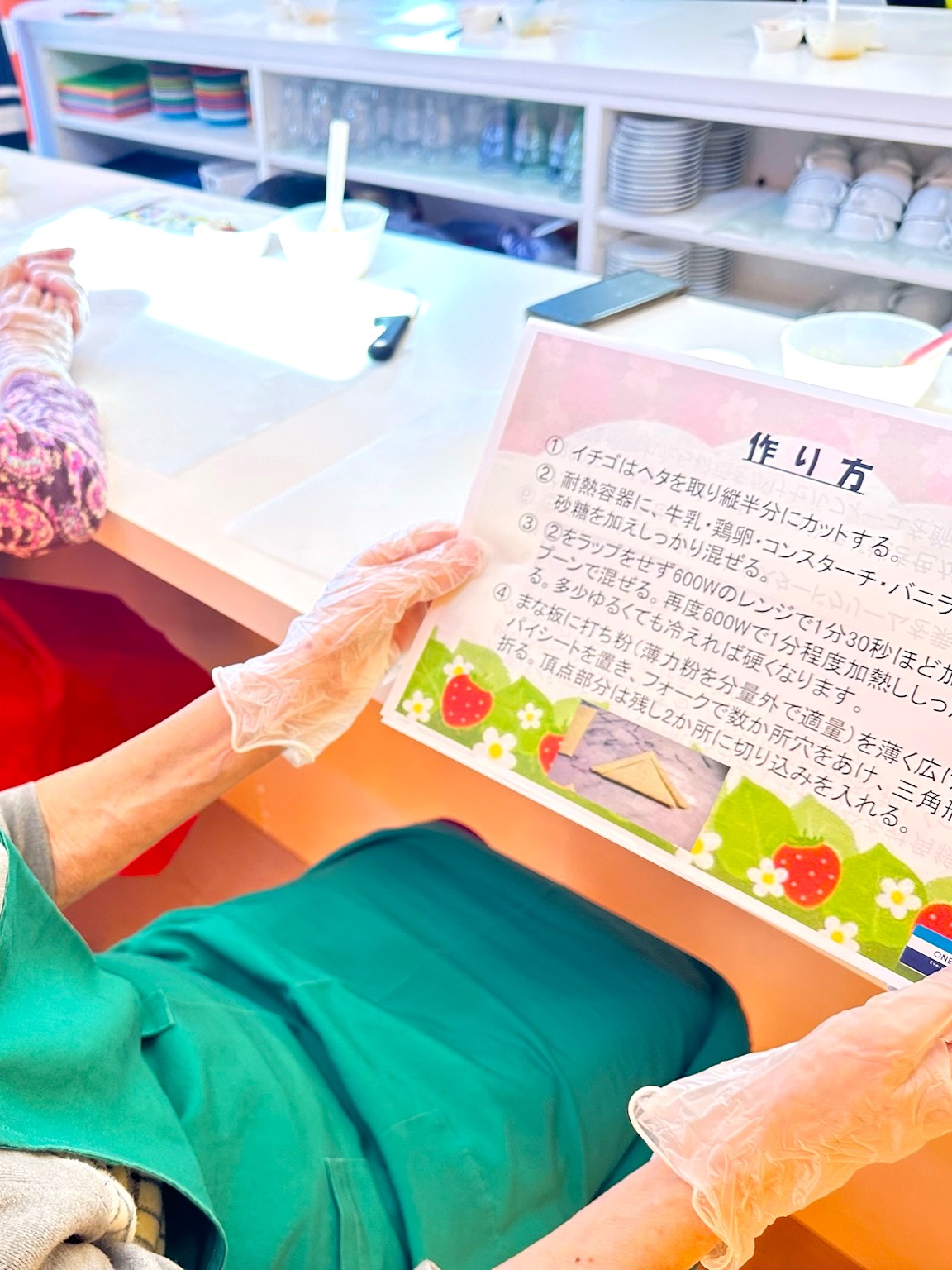 本日の日常生活動作訓練のクッキングデイサービスは、利用者が収穫してくれた「いちご」を使います