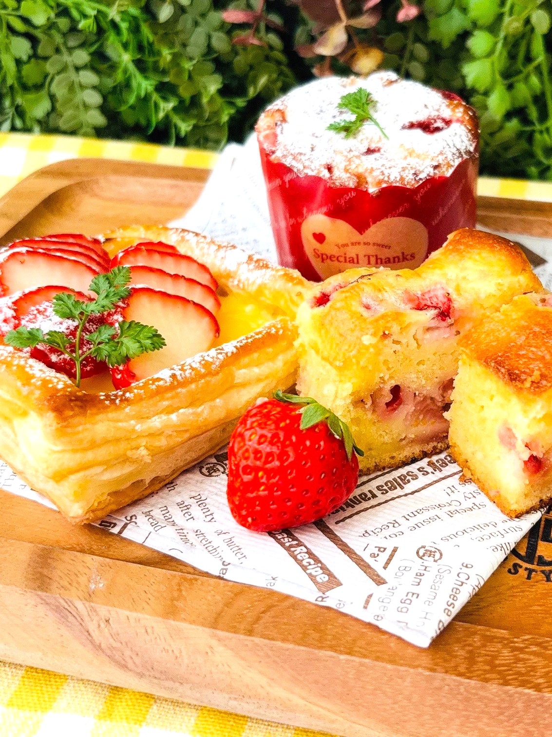 いちごのパウンドケーキ、いちごのカスタードパイ、いちごのマフィンを作ります