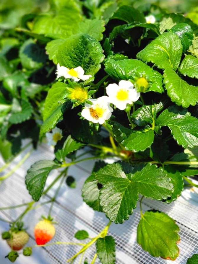 春の足音が近づくと、ミツバチに誘われて、同じ町内にある「いちご農園」からあまい香りが届きます