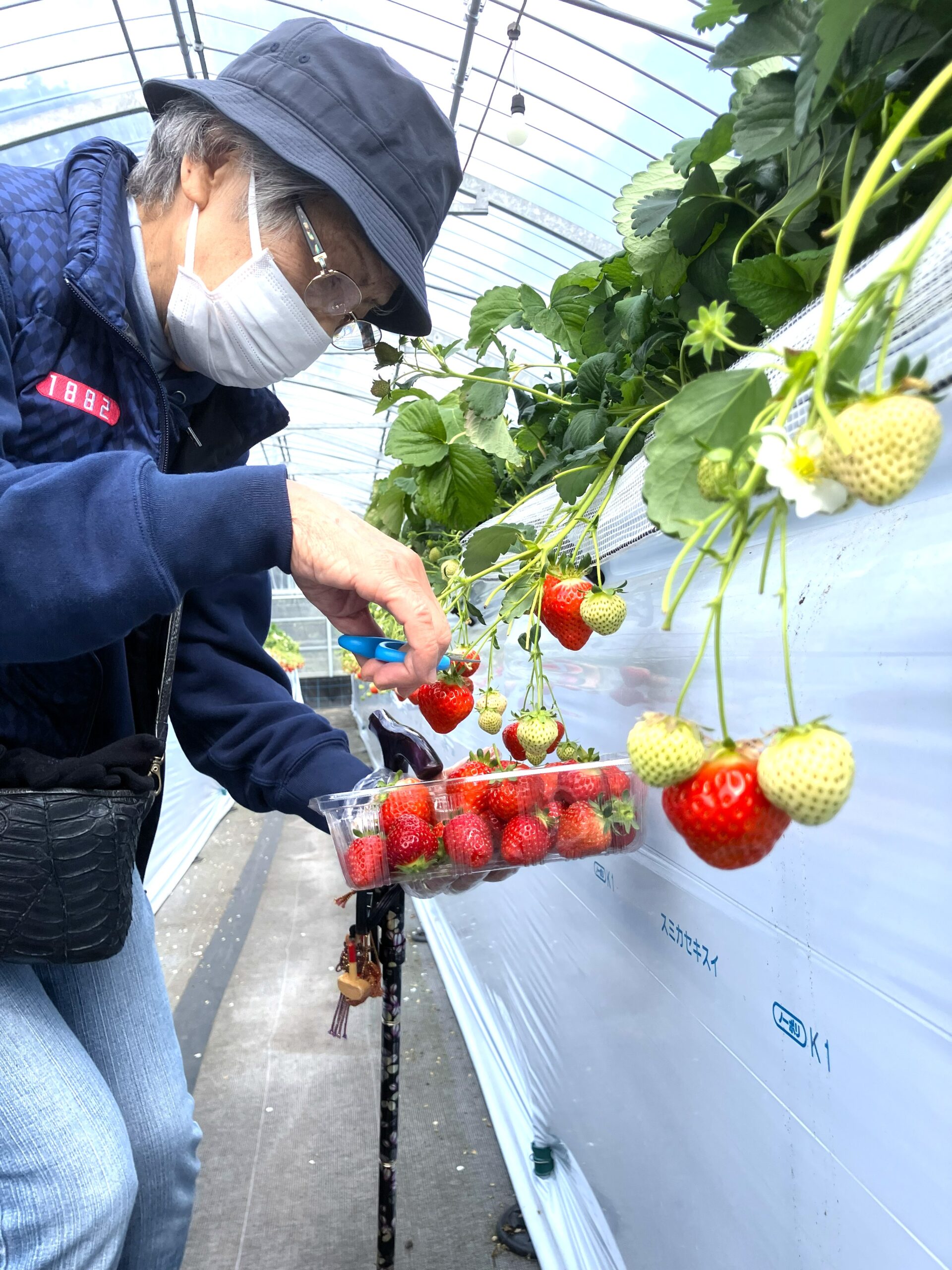 本日の屋外歩行訓練は、この時期限定の「いちご狩り」です
